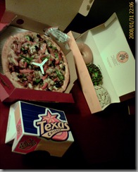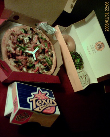 Some local pizza shop, J.Co. donut and Texas Fried Chicken.
